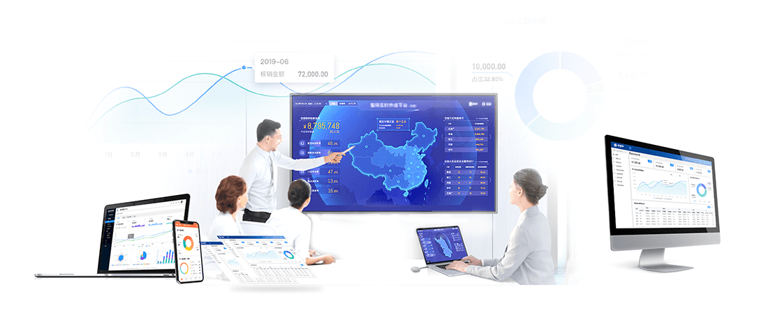 通过对业务数据的整合、分析,提供各类决策报告,并可对异常情况提供预警。分析后数据可以支持各种自主定义的分发方式。